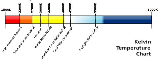 หน่วยอุณหภูมิ Kelvin (K) และ CT เป็นพารามิเตอร์ที่ใช้ในการแสดงลักษณะสีของแสงตัวเลข ค่า CT สูงจะบ่งบอกว่าแสงมีปริมาณสีน้ำเงินมากขึ้นซึ่งอาจเป็นอันตรายต่อเรตินาของมนุษย์ในช่วงเวลาอันยาวนาน AMA ขอแนะนำให้ CT ของแสงไฟถนนไม่ควรสูงกว่า 3000 เคลวิน (K)