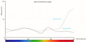 เครื่องสเปกโตรโฟโตมิเตอร์ยังมีความสามารถในการแสดงเส้นสะท้อนแสงที่ทำให้ผู้ใช้สามารถมองเห็นได้ว่าสีของวัตถุทั้งสองต่างกันอย่างไร