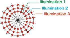 CM-512m3A ใช้ระบบส่องสว่างบริเวณเส้นผ่าศูนย์กลางซึ่งส่องสว่างพื้นผิววัตถุโดยใช้วงแหวนของเส้นใยแสงในแต่ละมุมที่แตกต่างกัน 3 มุม ซึ่งจะช่วยลดอิทธิพลของการวางแนวของเครื่องมือและเหมาะสำหรับการวัดพื้นผิวโค้งเช่นตัวรถหรือกันชนส่งผลให้มีเสถียรภาพมากขึ้น