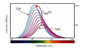 ดังนั้นแทนที่จะใช้ฟังก์ชั่นความไวแสงหนึ่ง ๆ ฟังก์ชั่นหลายอย่างจำเป็นต้องใช้ขึ้นอยู่กับระดับแสงที่อยู่ในบริเวณที่มีไขสันหลังูญดังที่แสดงด้านล่าง